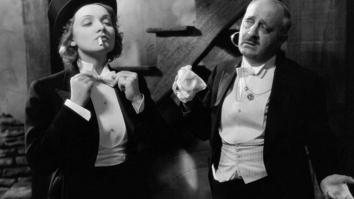 Morocco ushered Marlene Dietrich into Hollywood and cemented her star-image as a chic, suit-wearing seductress. Her appearance in the film flows between masculine and feminine, and the tuxedo became not only a symbol of the independent ‘Modern Woman’ who wore trousers but one which had a lasting legacy in the construction of queer coding.